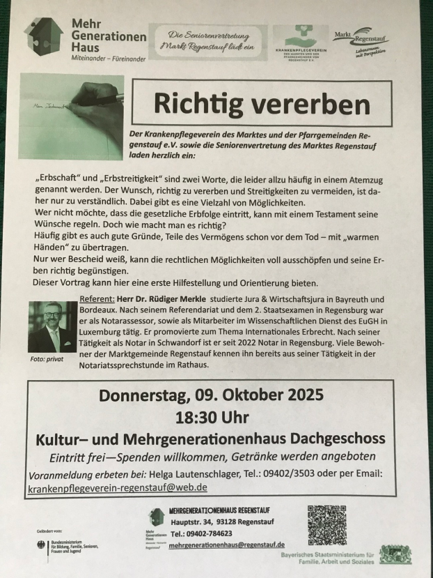 Anmeldung erforderlich ab 02.06.2025 bei unserer Schatzmeisterin Helga Lautenschlager unter: 09402/3503 bzw. 0170/6345759 oder per Email: